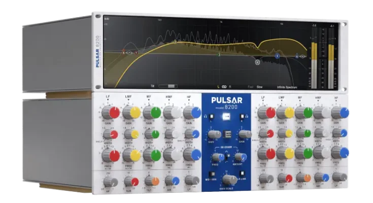 Just like the original machine, Pulsar 8200 gives you a tight and solid low end, a crystalline high end, and surgical control over the frequency spectrum. He perfectly replicates the all-discrete, Class-A analog electronics that made the original machine famous in the 80s, and still used today.