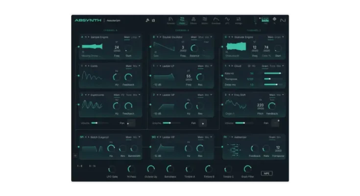 At the core of Absynth 6 is a hybrid engine that combines granular, FM, wavetable, and subtractive synthesis with deep modulation and a suite of creative effects. Its three oscillator channels give you structured unpredictability and endless room for exploration – perfect for sounds that evolve, shift, and surprise.