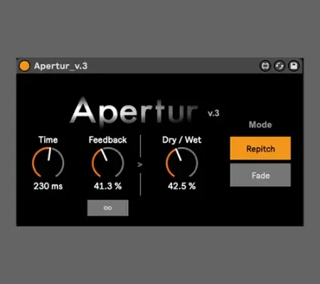 Apertur is a creative delay effect that uses arithmetic operations in gen~ to produce delays shorter than a millisecond.