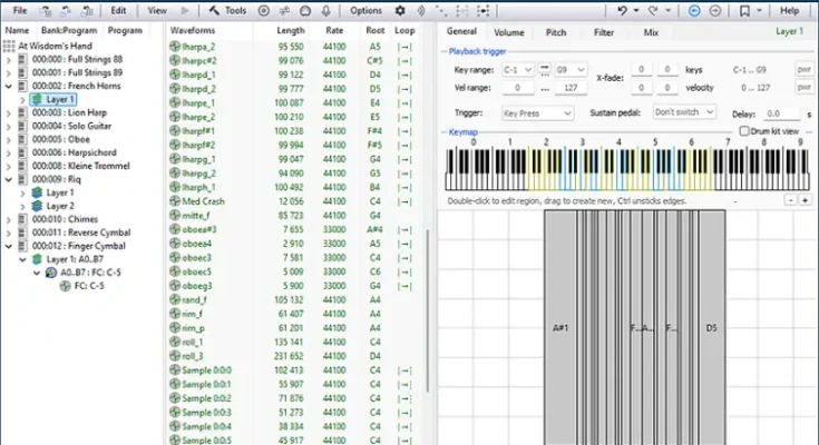 It can be used in a variety of ways — as a file format converter, as an audio editor, or as a synthesizer instrument editor.