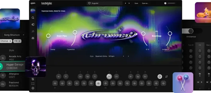 Shape your beats with full control over each track — adjust volume, pan, filter, ambience, saturation, and route outputs individually right inside the plugin.