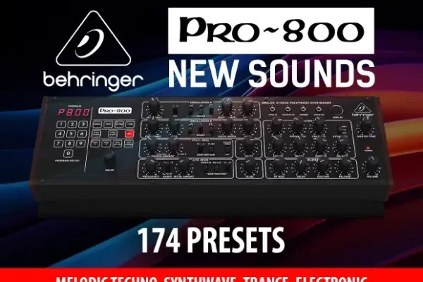 Modern presets for your Behringer Pro-800 synthesizer.From Access Virus Ti 2 official presets designer Andi Vax.174 Melodic Techno, Trance and Synthwave patches:64 ARP LEADS34 PLUCK LEADS20 LEADS33 PADS18 BASSES5 FX2 versions of the preset bank included:- 1 SYX file with 174 patches for using with FREE Midi Peak Editor- 2 SYX files for using in Behringer Syntribe AppCompatible with firmware 1.4.1+Valhalla Supermassive preset included.Video manual included.