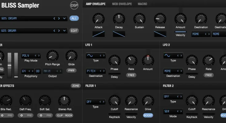 Experience discoDSP Bliss, the ultimate sampler. Import classic Akai S1000/S3000 ISO disk images and CUE sheet audio alongside SFZ, SoundFont2, NKI (Kontakt 1-4), EXS, and Renoise formats. Record VST and AU instruments as SFZ files without quality loss. Capture external hardware and any audio source with automatic sampling and audio recorder (standalone only). Customize your sound with a scalable GUI, wave editor, 7 effects with 8X oversampling, macro presets, and versatile modulation. Enjoy up to 64 voices, SINC 128 interpolation, and full MIDI control. Bliss offers exceptional playback and creative possibilities for any production. Elevate your music with the powerful and intuitive Bliss sampler.