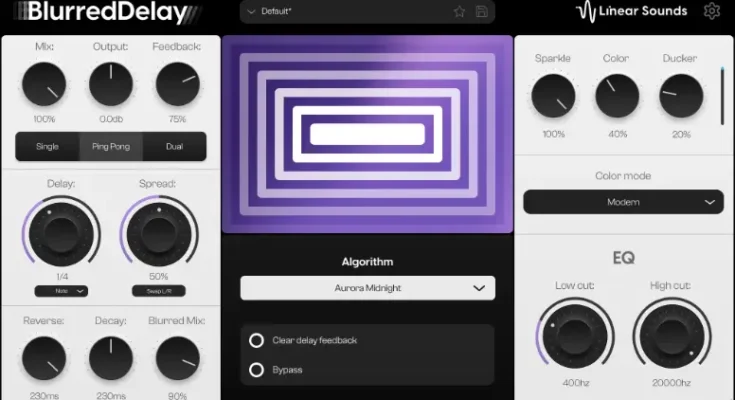 BlurredDelay harnesses the power of the Blurred Engine and combines it with a modern delay. This results in an ambient delay that reverses the sound into each delay throw. You can decide how much of the Blurred effects you want via the “Blurred Mix”.
