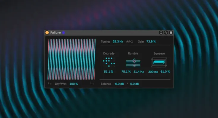 The heart of Failure is its resonator. Sympathetic to the second, third and fourth overtones, its sensitivity to the presence of bass can be dialed in using the tuning and gain parameters.