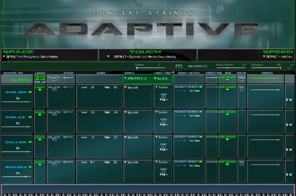 – For “ensemble” patches, each section can contain ANY short or long articulation (spiccato, staccato, detache, pizzicato, col legno, Bartok pizzicato, sustain, tremolo, major trill, minor trill).