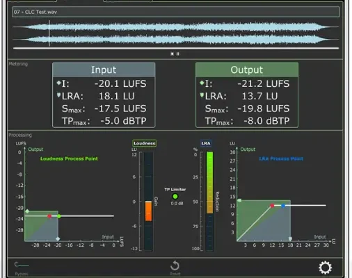 Continuous Loudness Control Stereo from RTW is a plugin or standalone software for automated adjustment of the loudness of stereo audio files. It is used by home users and professionals alike who want to quickly edit unknown or long audio files in terms of volume, for example in the postproduction of live audio files, DAW audio and broadcast preparation for TV and radio. It differs from “Continuous Loudness Control” by its limitation to only two channels. Thanks to its design as standalone software instead of just a plug-in, CLC can also be used without a host application, allowing the software to be used in third-party application environments without any additional DAW software.