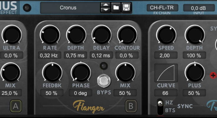 Introducing CRONUS, a new time-modulation effect that includes 3 effect types in one: Chorus, Flanger and Tremolo. All of these effects are time-modulated delay effects.
