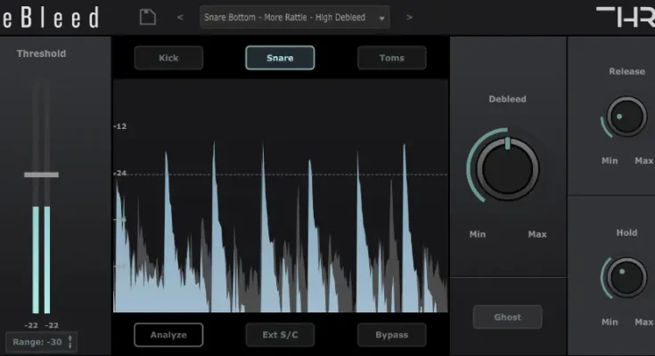 It achieves this by processing the Cymbal Frequencies independently from the rest of the kit, cutting out the unwanted cymbal bleed without touching the important parts of the signal.