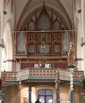 The organ in the Catholic Church of Dingelstädt, Germany, was built by Anton Feith (1902-1979) in 1932/33. It was recently restored by Karl Brode, Orgelbaumeister from Heiligenstadt, who brought back the original disposition of the instrument. The instrument has 3 manuals, pedal and 45 speaking stops, numerous playing aids and couplers. Its tonal characteristics is predominantly of a German Romantic style, but influenced by many other concepts. Feith had his own thinking about organ sound, he was very creative in this point. In Dingelstädt, we hear many inspirations. There are romantic components. Thereto some parts of a neobaroque concept, the mutations, the Glöckchen 1′, the Terzian. The influences of a theater organ style: the whole organ in a swell box, the unusual character of the divisions like Main, Accompaignment, Solo, the Tibia clausa-like flutes, etc. And the original tremulant for the entire organ.