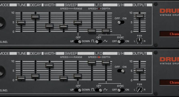 DRUMSYN is a separate channel from a vintage style monophonic drum synthesizer sometimes referred to as a “secret weapon” in techno and electronic music. Combine two, like in the product shots above, to resemble the original!