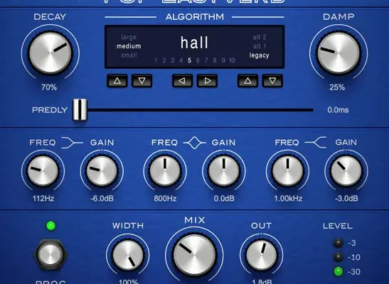 PSP EasyVerb gives you a choice of ten beautiful algorithms: Ambience, Room, Chamber, Club, Hall, Arena, Cathedral, Spring, Plate and Reverse. Each algorithm interacts differently with the same set of simple controls, so you don’t have to re-learn the plug-in every time you change your sound.