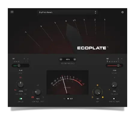 A wide, robust, and luxurious plate reverb plugin that allows engineers and producers access to the original Ecoplate I in the convenience of their own studios without having to acquire a hard-to-find and bulky analog unit.