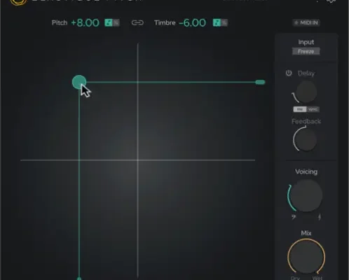 Sculpt pitch and formants independently for creative sound design, subtle vocal enhancement, or bold transformations. Push your audio further with the built-in Pitch Delay and Grain Freeze features for evolving textures, shifting echoes, and wild effects – all in real time.