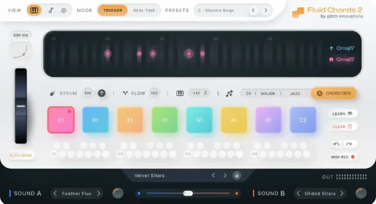Fluid Chords 2 is an intelligent chord bending plugin that enables you to bend from any chord to any chord in real-time!