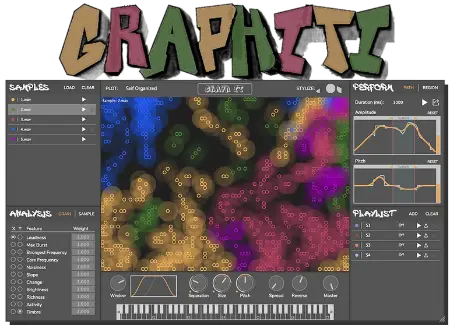 This innovative tool uses analysis and AI to organize sample audio into clusters of grains, creating a sonic space that you can explore intuitively by drawing paths to produce unique mashups of your sound library. Simply drag and drop your samples, select your analysis features, and let Graphiti paint you a picture. Crafted for musicians, sound designers, game developers, and foley artists, Graphiti embodies our commitment to creative audio software offering new ways to create and explore audio. With Graphiti, we invite you to GraphIt! and redefine the potential of your sound library.