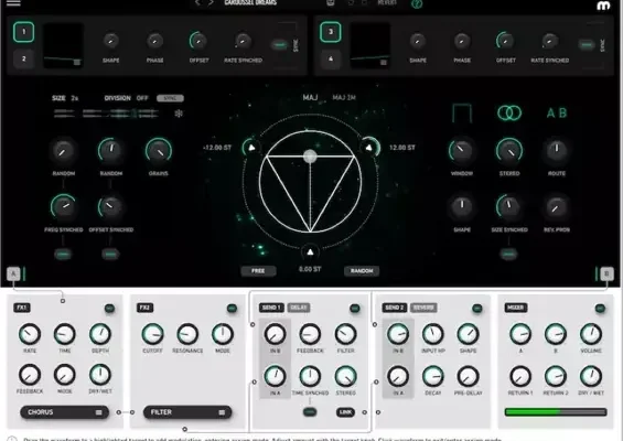 • Interactive 3-way panel for transposition, detuning, microtonality and shimmer effects