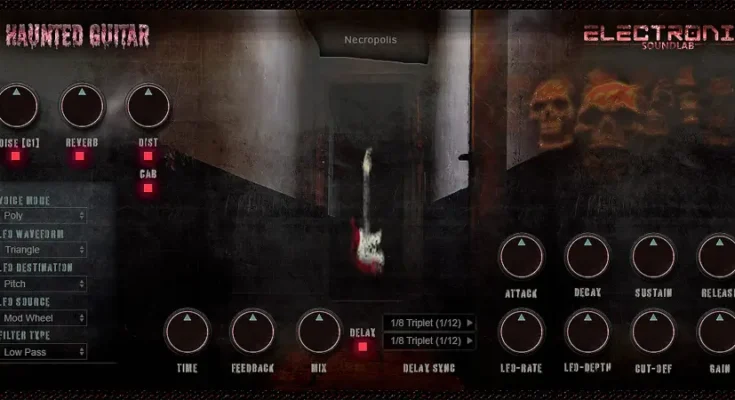 Haunted Guitar is a VST/VST3/AU instrument created with a multi-sampled Fender Stratocaster Plus Deluxe Electric Guitar, each preset contains 28 samples processed with various high quality effects to achieve dark and spooky guitar sounds.The interface is user-friendly and straightforward with ADSR amplitude envelope, LFO modulation, lowpass/highpass filter and cutoff. New effect modules were added -distortion, delay and reverb, the delay effect comes with typical controls and parameters.Haunted Guitar is available in VST/VST3/AU plugin formats for Windows and Mac (64 bit)Features:• 55 Presets• 1540 Samples• ADSR envelope controls• HP / LP Filter• LFO modulation controls• Filter type selector• Voice mode• Built-in vintage reverb• Built-in distortion• Built-in delay