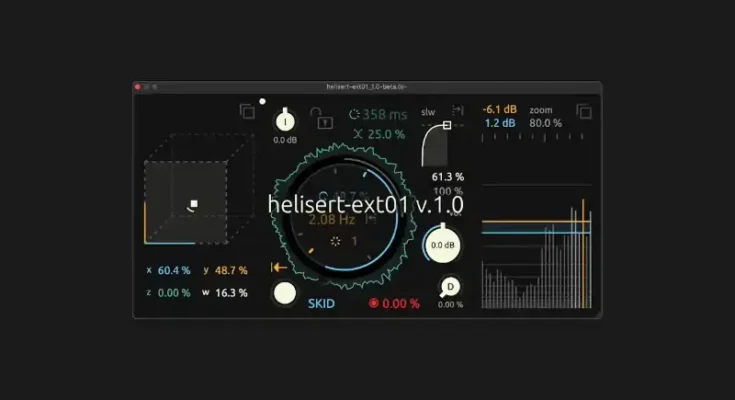 Helisert is a complex streaming looper. It doesn’t rely on sample file drops but rather records and plays back audio inputs simultaneously. The sample-based processing is applied to eliminate noise typically generated when the playback position aligns with the recording position or at the end of the flexible-length loop.