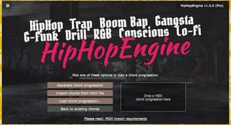 HipHopEngine takes your chord progressions and transforms them into memorable melodies, smooth basslines, and catchy hooks — automatically.