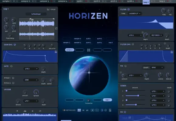 A joy for sound designers and producers alike, Horizon’s 10-voice architecture allows for combining 4 sample engines with 4 voice dual OSC/wavetable synths plus 2 loop player engines. The resulting sounds are lush, extremely detailed and with a depth not often heard. Horizen will effortlessly fit to any genre – from Rock to EDM to Lofi and everything in between, it also offers a LOT for those working in Game/Film. A synth made by composers for composers!