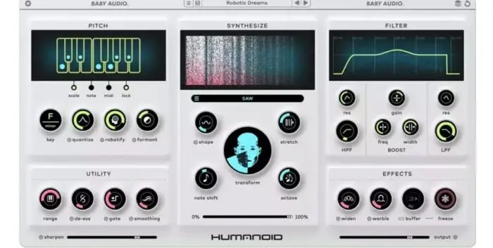 Create stunningly robotic vocals from any singing performance. Humanoid is an over-the-top pitch corrector designed for instant hard-tuning and radical voice manipulation. With a brand new approach to vocal tuning and phase-vocoding, the plugin transforms singers of any style and ability into their best synthetic selves.