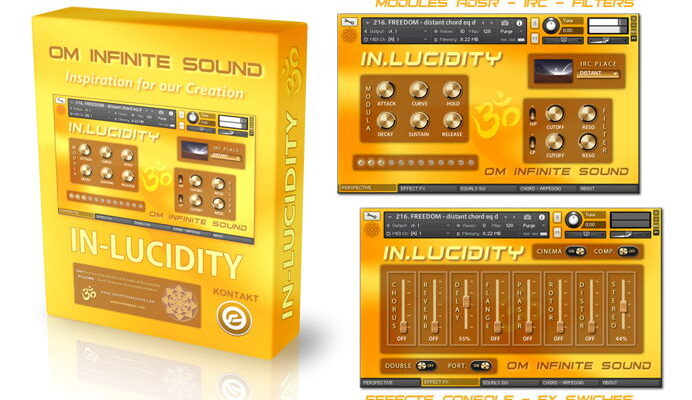 ॐ IN-LUCIDITY is a new KONTAKT library, specially designed acoustically and digitally with (8) amazing instruments to inspire and recreate fantastic compositions. Samples with great sound quality and light and fast loading, allow to add a greater number of instruments without consuming too many resources. With an intuitive and easy-to-use interface, it has the necessary tools for musicians, experts or beginners so they can customize instruments with fabulous sounds.