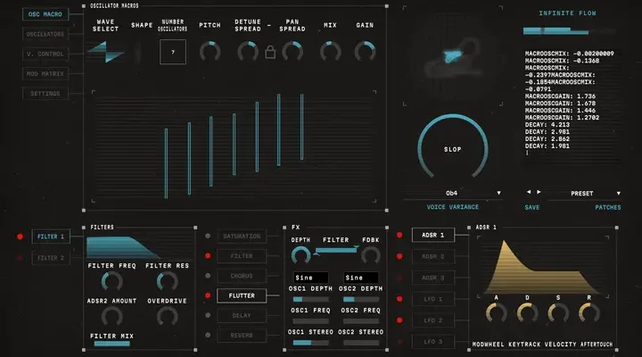 Infinite Flow gives you the warm musicality of 12 iconic analog polysynths packed inside a fast drag-and-drop interface.