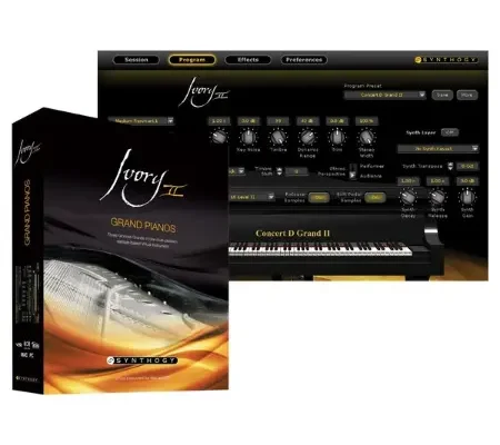 Featuring a greatly expanded sound set with up to 18 velocity layers, and the powerful Ivory 2.5 DSP engine with Harmonic Resonance Modeling for true Sympathetic String Vibration, Ivory II Grand Pianos soars at the highest possible levels of sampling and synthesis technology.