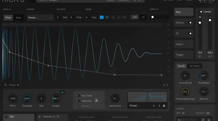 No longer limited to synthesizing the sub element yourself, KICK 3 lets you import and analyze your favorite kick samples directly in the plugin.