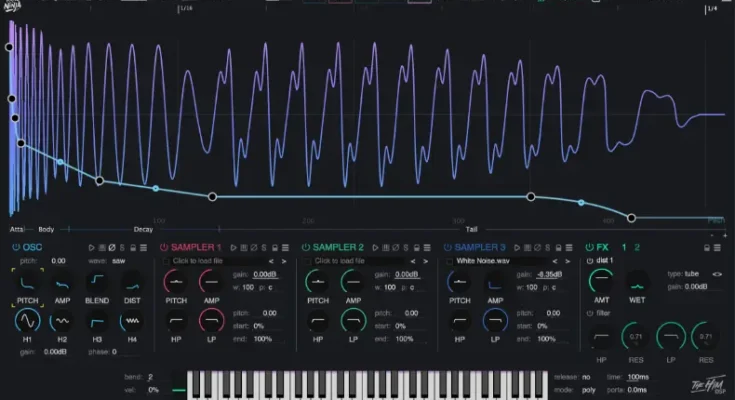 Three separate sample layers allow you to add custom attack, noise, texture, or any sample to enhance your sound.