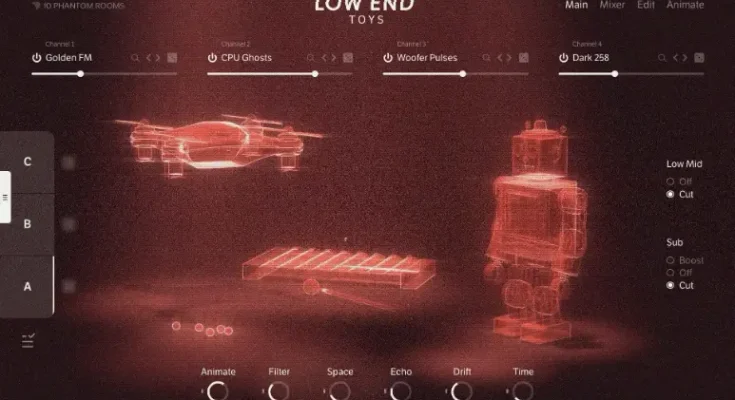 Low End Toys by 10 Phantom Rooms results from the collaboration of three music industry icons. Tobias Menguser, with 30 years of sound design experience, leads the project. Paul Haslinger, known for his work with Tangerine Dream, Underworld, and soundtracks like Halt and Catch Fire, and Peter Baumann, a pioneer from Tangerine Dream and Neuland, round out this exceptional team. Their combined expertise and creativity define Low End Toys.