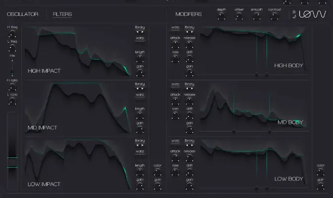 LØW is a bass-focused synth audio plugin designed for deep, expressive and mix-ready low end. Hand-draw, play, and loop envelopes to sculpt the perfect articulation for your track. LOW covers every Bass sound, from classics to original, from silky to gritty, from analog to digital.