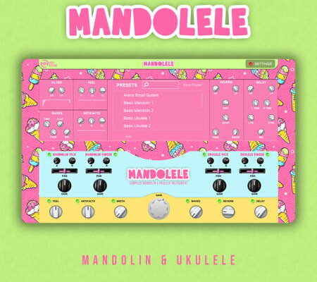 Mandolele is a Sampled Mandolin & Ukulele Instrument containing 1 Mandolin & 1 Ukulele. Each Instrument was recorded twice, once with a Guitar Pick & once with just a Finger. This gives us 4 totally different Tones. We then blend the 4 Mandolin & Ukulele Tones together to bring you some Unique Combinations!