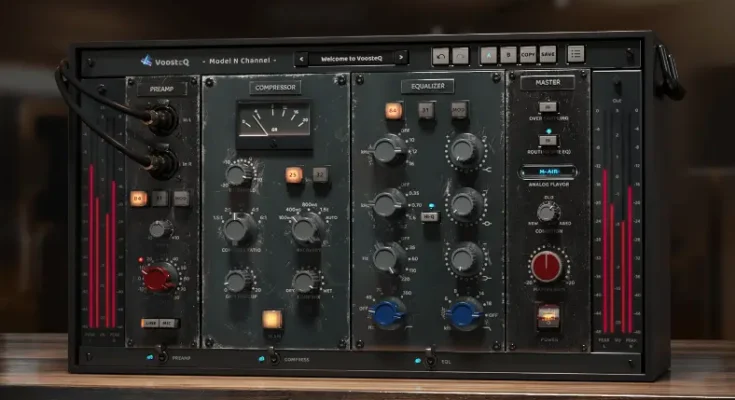 Model N Channel is not just modeling the sound of the original preamp, comp, and EQ alone. It features modeling of the sound qualities and tones routed in large recording studios, including sounds through British consoles, cables, bantam patch bays, and even AD/DA, which can add a strong analog texture.