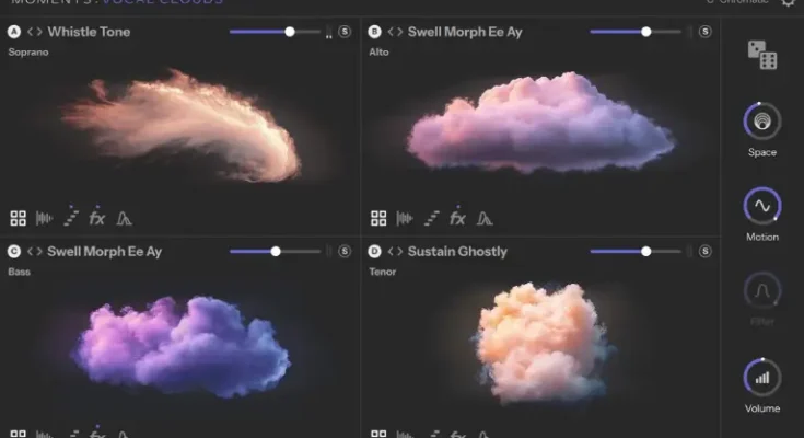 Hold a chord and hear it breathe. Moments: Vocal Clouds unfolds voices into shifting textures that move and bloom over time. Four independent layers let you shape immersive, rhythmic vocal landscapes from the simplest input. From gentle whispers to vast cinematic swells, you can create evolving soundscapes that feel alive, emotive, and uniquely yours.
