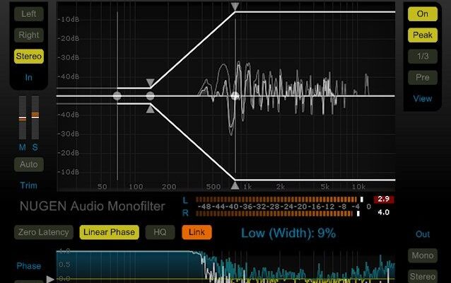 Monofilter defines the centre of your bass, so easily lost through stereo effects processing, synth sound generation, unwanted phase inconsistencies and live recording mic. bleed. Market-leading features give you really accurate control over stereo spread, transition and phase alignment, with precise visual feedback in a tactile interface that lets you grab the applied stereo envelope and manipulate it directly – without using abstract parameters and knobs.
