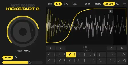 Forget fiddling about with compressors – Nicky Romero and Cableguys put everything you need for professional sidechaining into one fast, easy plugin. Just drop Kickstart on any track to instantly duck the volume with each kick drum, creating space for your bass.