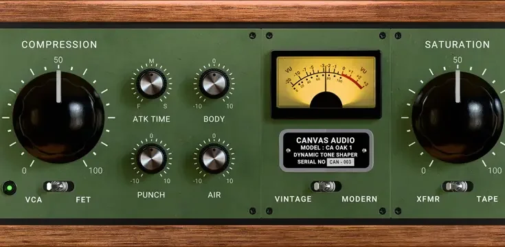 Oak includes two extremely tasty saturation circuits modelled after both revered vintage transformers and soft but sweet vintage tape. Take your pick and start dialling in!