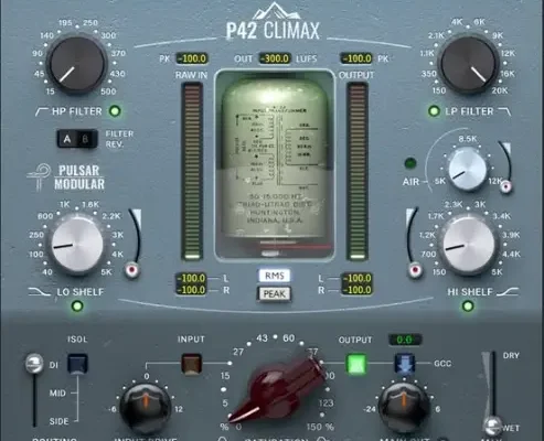 Pulsar Modular P42 Climax is an innovative multifaceted powerstrip for tone shaping/coloration, saturation and conjures more of the idea of working with multiple pro-grade audio hardware units. P42 Climax begins with the heartbeat of a hardware line amp, and ends on every single track because it has the cpu coverage to do so (more than 300 instances in a single session). Sculpt your perfect sound whether processing a single instrument, grouped tracks, the 2-bus or even when mastering. The sound is simply… unbelievable!