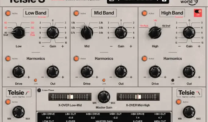 The SonicWorld Telsie S is a 3-band equalizer plug-in based on the famous Siemens W295b discrete class A equalizer from the 1970s.