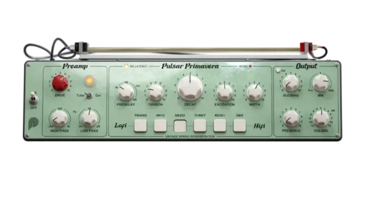 Pulsar Primavera is a 6-in-1 reverberation plugin that includes devices heard on countless hits throughout the ages. From lo-fi to hi-fi, each tank precisely emulates the original units’ electronic and mechanical behavior. Furthermore, exclusive spring tension and excitation controls offer a wider sound palette than typical convolution models.
