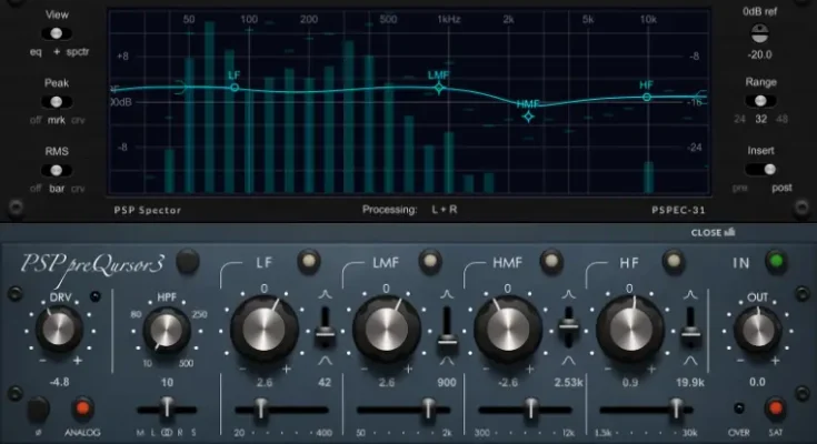 PSP preQursor3 offers PSP’s uniquely designed filters with low resonance peaks for reduced ringing artifacts great band separation and narrow notching when attenuating. All four filters are bell-type filters when boosting and have progressive Q factors.