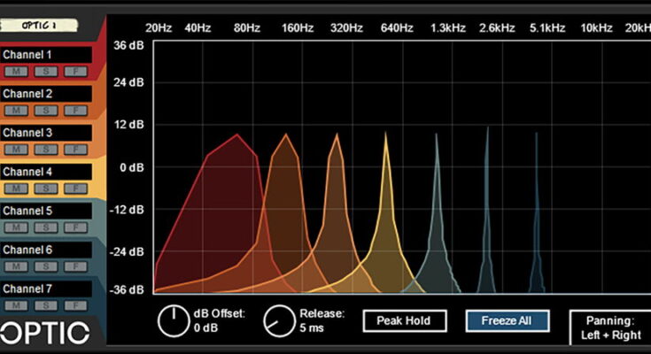 Optic is a multi-channel spectrum analyzer (and oscilloscope) capable of analyzing up to 7 different stereo channels at once, displaying their frequency content side by side for comparative and creative purposes. With Optic you’ll get valuable insight into your mix that you can’t find anywhere else in the Rack Extension format.