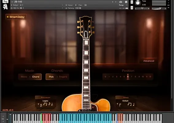 JB-145 Archtop Guitar by Straight Ahead Samples, an advanced virtual instrument offering composers, producers and arrangers extremely realistic sounds of a jazz archtop guitar made for Kontakt.