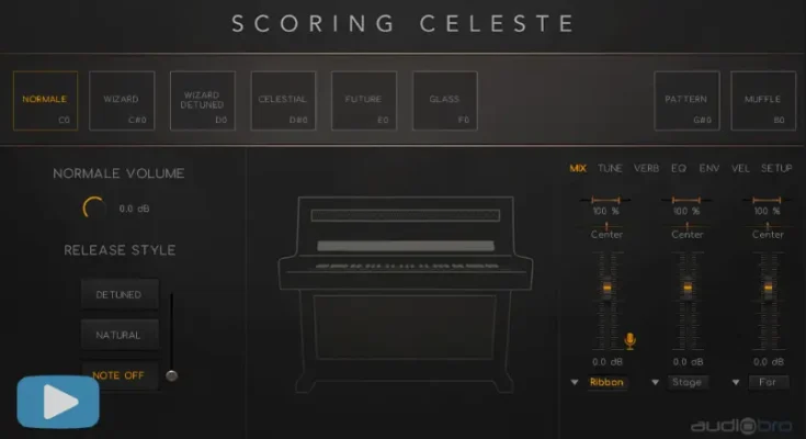 Scoring Celeste & Bells was meticulously recorded at an elite Los Angeles scoring stage. Both world class instruments — a concert celeste and rare song bells — were captured using coveted close, stage, and surround mic arrays. We also recorded a 2nd pair of close ribbon mics for that “classic ribbon sound.”