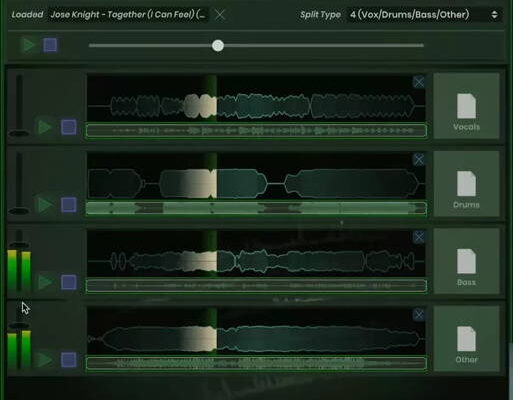 Simple Stems is a quick and easy way to decompose any audio into its constituent parts. The plugin uses the well-established Spleeter algorithm by Deezer to deconstruct songs into 2, 4 or 5 stems. The results are stunning, though more complicated mixes and live recordings are not always perfectly decomposed.
