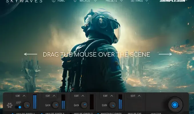 Its intuitive interface and mouse-drag UI zone provide you with complete control over the sound by consolidating numerous parameters into a single gesture. This makes SkyWave a unique and powerful tool for quickly creating immersive soundscapes that evolve with each mouse-drag or CC movement.
