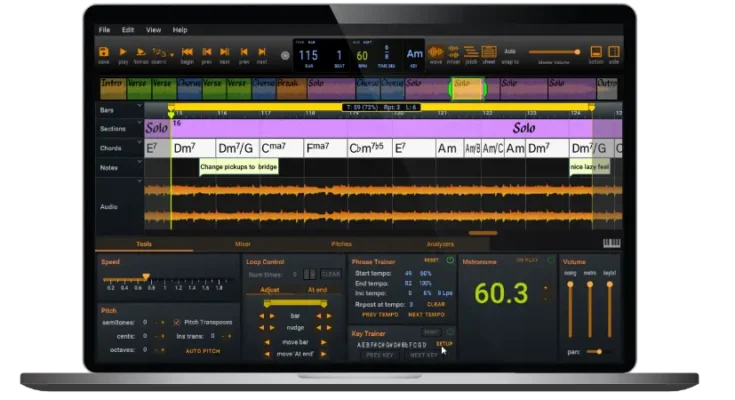 Song Master gives you the tools to learn your favorite songs directly from the recording and to practice them efficiently. Song Master uses advanced machine learning and deep learning algortihms to determine a song’s high level sections, chords, bars, beats, time signature, key, and tuning.