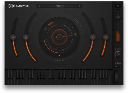 100 Presets from SUBDIVINE are divided into two groups: Analog – sampled from some of the best analog synths and Digital – sampled from some great digital instruments. Every preset has its own character and unique sound that can be formed with ADSR envelope and enhanced with Drive. And of course, there’s glide and a pitch wheel.
